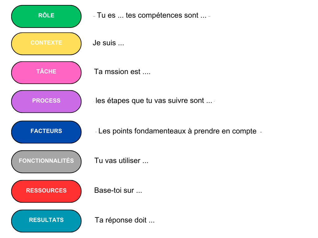 Voici un tableau vous pouvez vous en inspirer pour rédiger vos prompt ChatGPT.